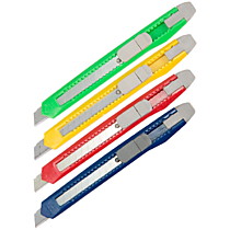 Стальное выдвижное лезвие и пластиковый корпус. Механическая система блокировки лезвия PUSH-LOCK.. Cъемная деталь с прорезью для безопасного отламывания затупившейся части лезвия. Ширина лезвия 9 мм. Цвета в ассортименте. Индивидуальная упаковка в пакет с
