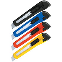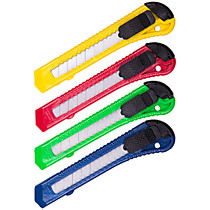 Стальное выдвижное лезвие и пластиковый корпус. Механическая система блокировки лезвия PUSH-LOCK. Ширина лезвия 18 мм. Cъемная деталь с прорезью для безопасного отламывания затупившейся части лезвия. Цвета в ассортименте. Индивидуальная упаковка - пластик